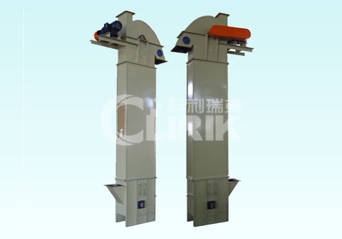 斗式提升機(jī)的輸送工作原理是:料斗把物料從下面的儲(chǔ)藏中舀起,隨著輸送帶或鏈提升到頂部,繞過(guò)頂輪后向下翻轉(zhuǎn), 斗式提升機(jī)將物料傾入接受槽內(nèi)。帶傳動(dòng)的斗式提升機(jī)的傳動(dòng)帶一般采用橡膠帶,裝在下或上面的傳動(dòng)滾筒和上下面的改向滾筒上。鏈傳動(dòng)的斗式提升機(jī)一般裝有兩條平行的傳動(dòng)鏈,上或下面有一對(duì)傳動(dòng)鏈輪,下或上面是一對(duì)改向鏈輪。斗式提升機(jī)一般都裝有機(jī)殼,以防止斗式提升機(jī)中粉塵飛揚(yáng)。